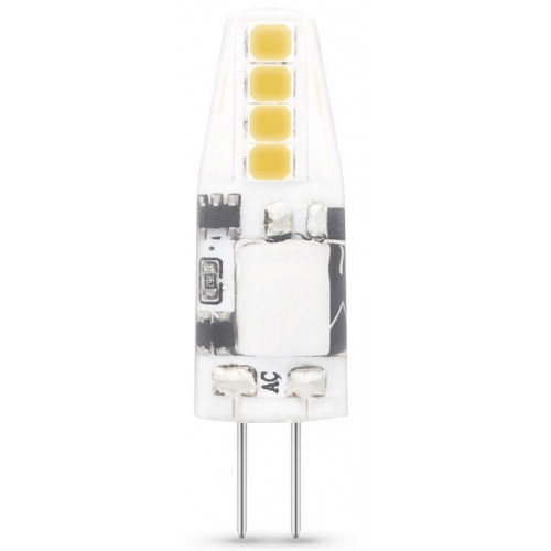 LED vervanger voor de 12V halogeen bi-pin steeklamp COB Fitting: G4 Type : steek, bipin Vermogen: 1,8 watt Vervanging: 18 watt Voltage: 12 volt Lichtkleur: 2700 Kelvin Lichtopbrengst : 180 lumen Kleurechtheid: CRI 82 Energielabel: F Aantal branduren: 15.000 uur Aantal schakelingen: 30.000 uur Garantie: 2 jaar Diameter 11 mm Hoogte 38 mm