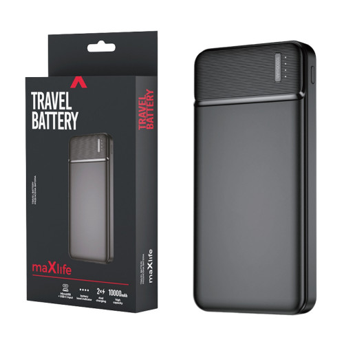 Powerbank 10.000mAh met 2x USB-A + USB-C + micro USB uitgang De Micro USB kabel is inbegrepen. Powerbank van Maxlife met 10.000 mAh. Hoogwaardige moderne Li-Poly cellen zorgen voor vele laadcycli. De buitenbehuizing is gemaakt van plastic en heeft een modern design. Snelle invoer: Opladen via MicroUSB of USB Type-C met 5 V/2 A (10 W). Geschikt voor DUAL laden Met LED-capaciteitsindicatoren Afmetingen 137x69x16mm