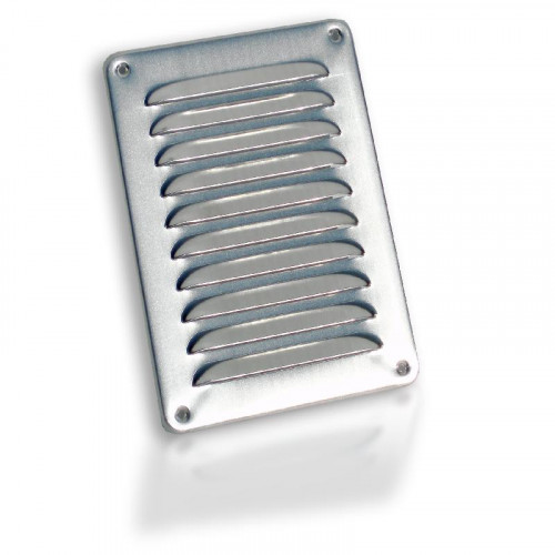 Met horizontale schoepen. Voorzien van verzonken schroefgaten. Met omgezette rand, opbouw. Niet afsluitbaar.